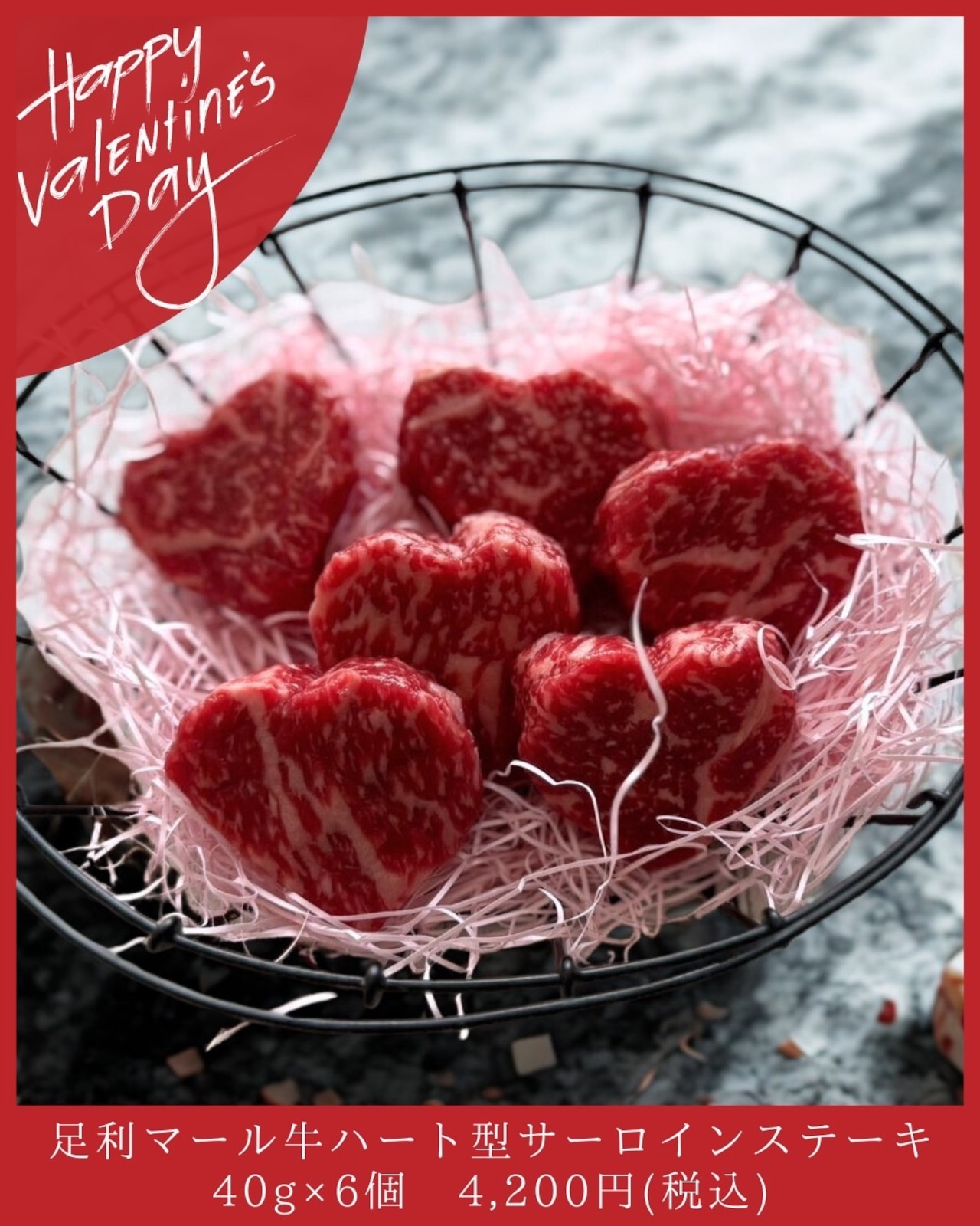 特別な日の食卓を演出する、バレンタイン限定の逸品です!足利マール牛のハート型サーロインを6個セットでお届け。まろやかな味わいがやみつきになること間違いなしです。